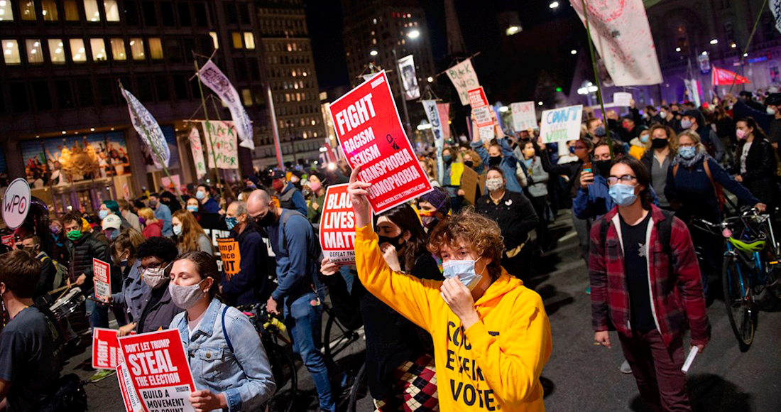 Varios centenares de personas también se manifestaron este miércoles en Filadelfia, la principal ciudad del estado de Pensilvania, para que se cuenten todos los votos y se respete el proceso democrático de las presidenciales, que debe finalizar con el recuento de las papeletas enviadas por correo.