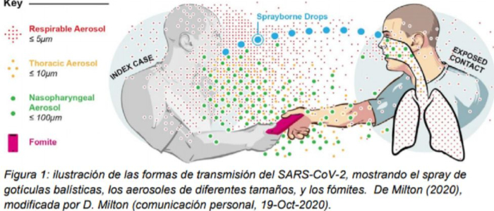 Los aerosoles, además, presentan una mayor capacidad de infección por su menor tamaño: pueden penetrar más profundamente en los pulmones y causar un cuadro más grave de COVID-19.