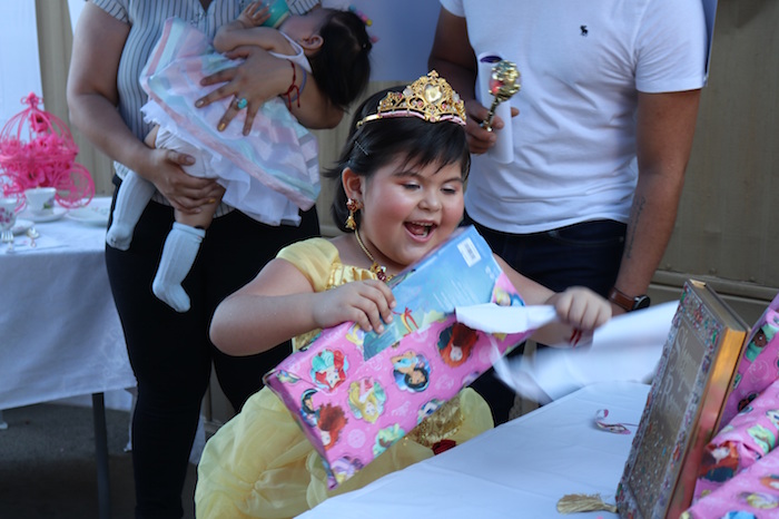 Vestida de color dorado de la cabeza a los pies y con la corona y el cetro de princesa, María fue en un carruaje de color blanco con sus padres hasta el lugar donde Bella le dio la "bienvenida" al club de las princesas honorarias y toda una serie de regalos que ella abrió ante las cámaras con una gran sonrisa en la cara.