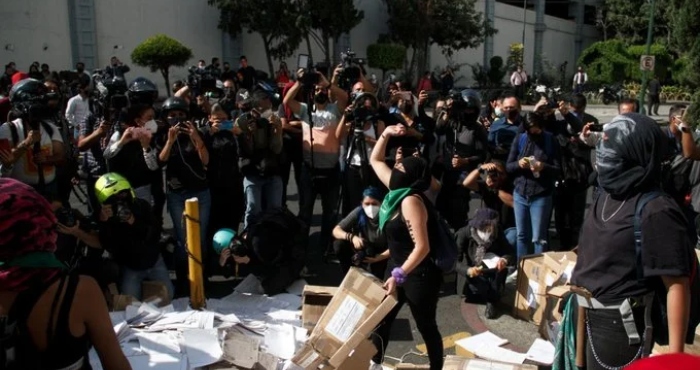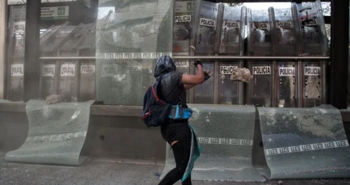 Debido a los reportes por destrozos y daños al exterior del inmueble, elementos del Grupo Atenea, de la Secretaría de Seguridad Ciudadana llegaron al lugar para alejar a las mujeres utilizando extintores, y humo.