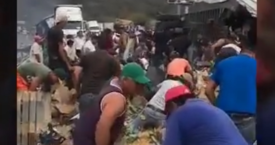 Decenas de lugareños realizaron rapiña a un camión de Coca-Cola que volcó en una carretera de Chiapas. El momento fue capturado en video.