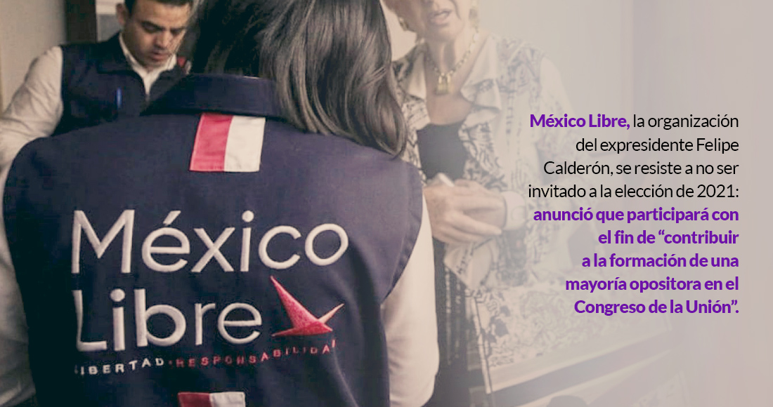 Ciudad de México, 26 de noviembre (SinEmbargo).– México Libre, la organización del expresidente Felipe Calderón Hinojosa, se resiste a no ser invitado a la elección de 2021. El pasado 21 de noviembre anunció que era segura su participación con el fin de “contribuir a la formación de una mayoría opositora en el Congreso de la Unión”.