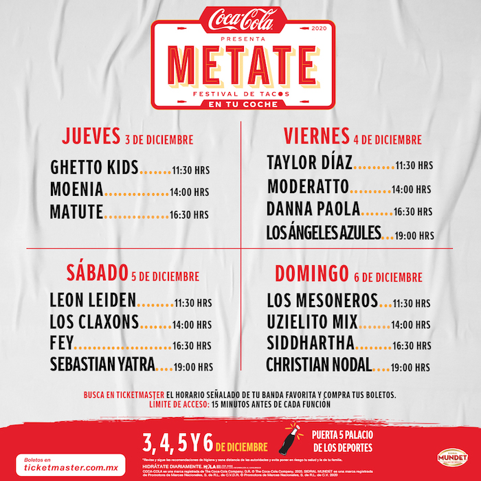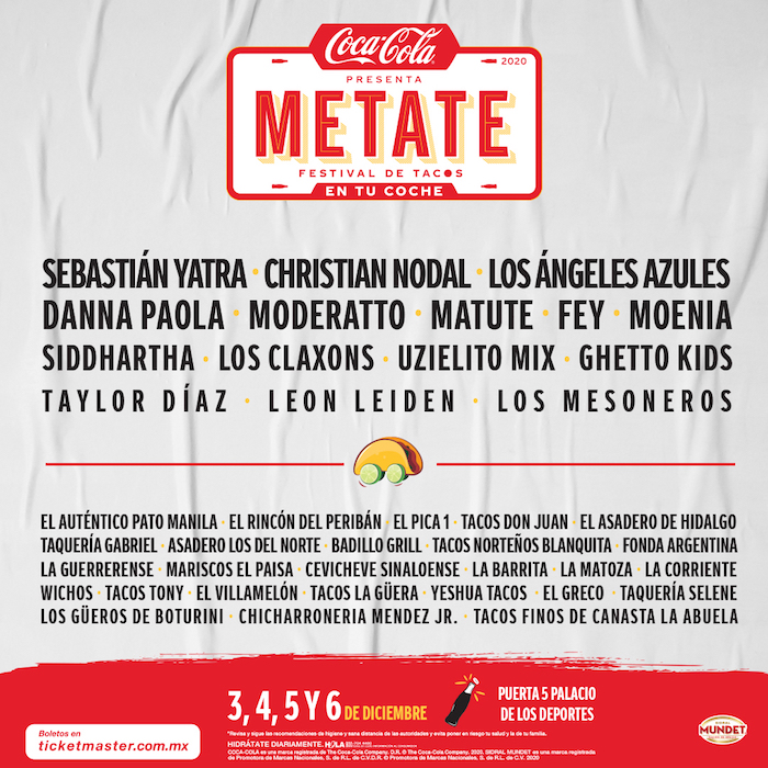 Ciudad de México, 1 de diciembre (SinEmbargo).- Después de más de ocho meses de que se llevara a cabo el Vive Latino, el último magnoevento musical en México antes de que iniciara la pandemia del coronavirus, Coca Cola se aventura a realizar Metate, el festival de tacos más importante, con un formato dri-ve-thru.