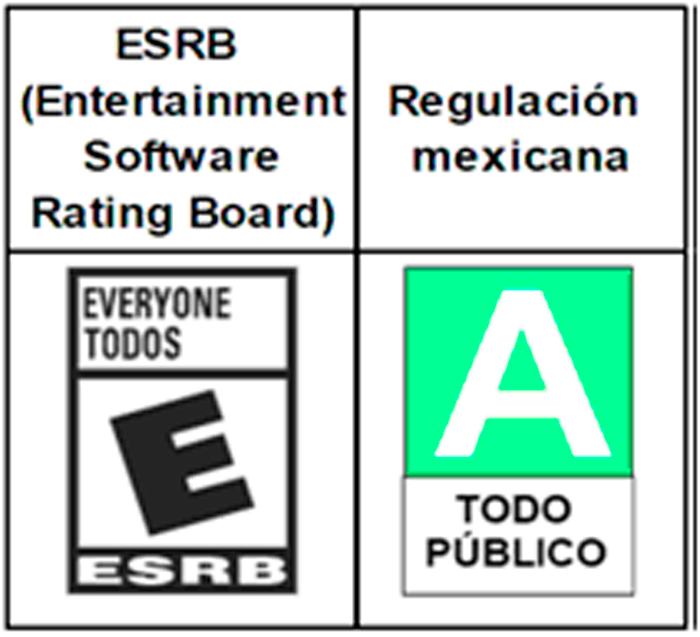 Clasificación A: Contenido apto para todo público. El videojuego es para todas las edades, puede que contenga mínima cantidad de violencia de caricatura, fantasía o ligera, puede tener uso poco frecuente de lenguaje soez moderado.
