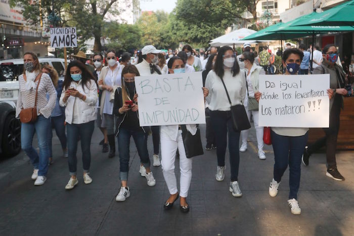 La marcha concluyó en el restaurante Surtidora Don Bátiz, en Calle Julio Verne, en Polanco, negocio del hombre asesinado, de acuerdo con el diario Reforma.