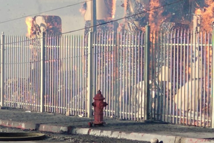 Incendio de la fábrica de muebles de madera South Cone de México donde se registran daños totales. Foto: Especial vía Zeta
