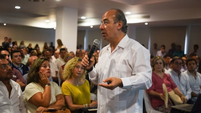 El expresidente Felipe Calderón durante una conferencia. Foto: Cuartoscuro/Archivo.
