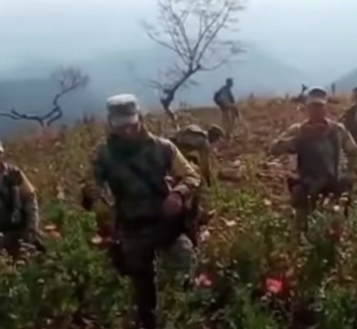 Pobladores de San Miguel Totolapan llegan desarmados, algunos a caballo, al lugar donde estaban desplegados los soldados que después de un diálogo sólo cortan plantas en dos parcelas y dejan despensas. El hecho queda registrado en video.
