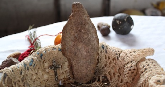 Las piedras sagradas están en el territorio, incrustadas en los cerros, en los terrenos de las familias, al pie de los árboles o pueden haber llegado a la tierra como meteoritos o estrellas fugaces. Algo así como las calabazas que usaban las gentes para bailar y curar, y decían que venían del cielo, en las crónicas de sus recorridos desde la Florida hasta Sinaloa, de Álvar Nuñez Cabeza de Vaca.