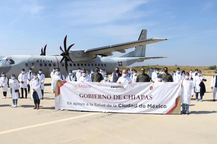 Las autoridades chiapanecas añadieron que para el traslado aéreo de los médicos, enfermeras y enfermeros de la Secretaría de Salud del estado se contó con el apoyo solidario de la Secretaría de Marina, que puso a disposición una aeronave.