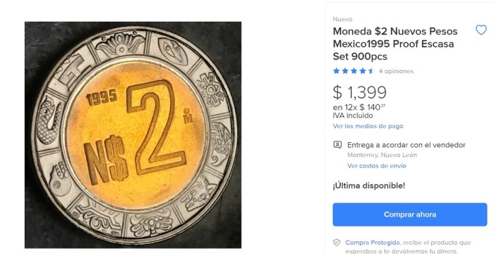 En plataformas digitales de compra-venta como Mercado Libre, se venden monedas de 50 centavos de los “nuevos pesos” hasta en 4 mil pesos.