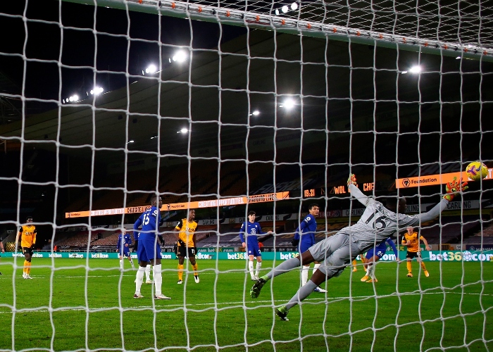Una primera parte de tanteo se saldó con un disparo de Pedro Neto que palmeó fuera Edouard Mendy y un cabezazo al larguero de Kurt Zouma justo antes del descanso.