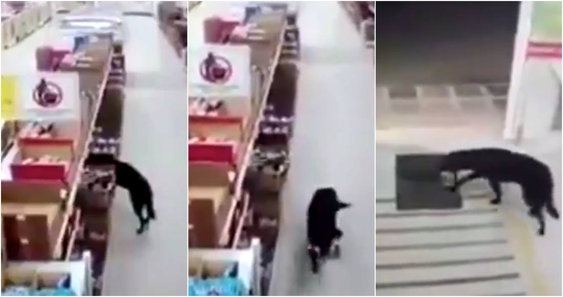 Por medio de una videograbación se muestra cómo el animal caminó por uno de los pasillos del establecimiento y eligió una bolsa de comida la cual tomó de un estante con su hocico y se dirigió hacia la salida.
