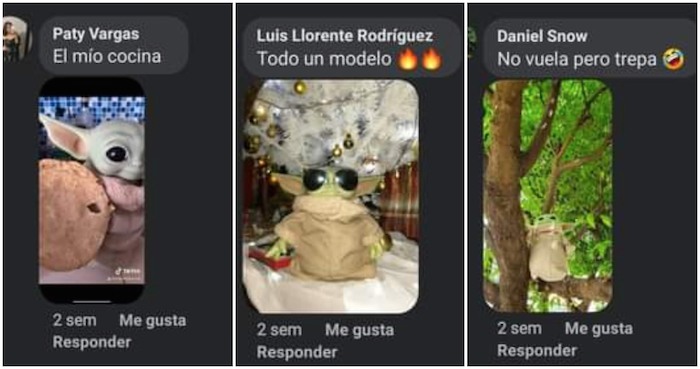 “No vuela, pero trepa”, señaló otro usuario mientras compartió una foto de Baby Yoda encima de un árbol.