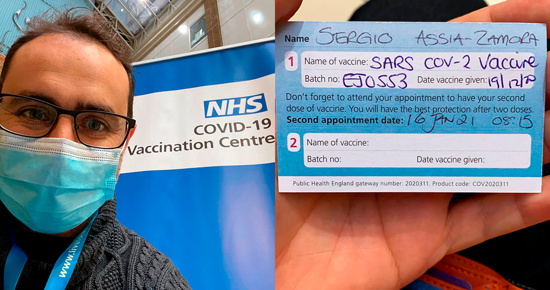 Sergio Assia Zamora es el primer poblano en recibir la vacuna contra la COVID-19; el sujeto lo consiguió gracias al Sistema de Salud Público de Inglaterra, así lo compartió en redes sociales el padre del sujeto, que es médico de Hospital Ángeles de Puebla.