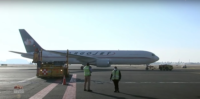 El avión de la aerolínea canadiense Cargojet arribó, procedente de Puurs, Bélgica, a las instalaciones del Aeropuerto Internacional de la Ciudad de México, al filo de las 09:00 horas de este sábado.