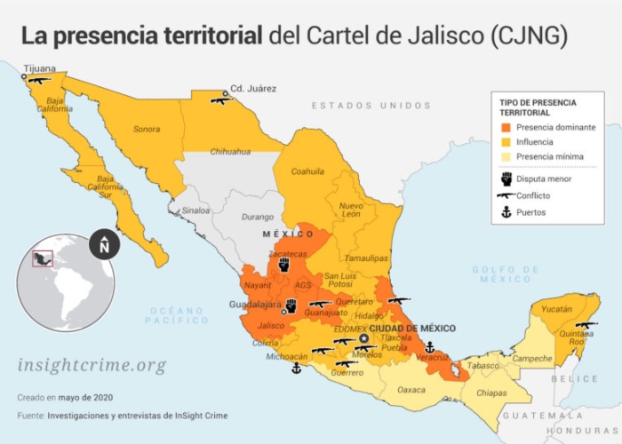 En 2020, InSight Crime publicó informes que demuestran que el Cartel Jalisco Nueva Generación (CJNG) es la amenaza criminal predominante de México, en gran parte apoyado por flujos de ingresos diversificados: tráfico de cocaína y drogas sintéticas, control de importante infraestructura portuaria, robo de petróleo y múltiples formas de lavado de dinero. Durante la pandemia, el CJNG ha utilizado esta ventaja para extender significativamente su posición, que de hecho ya es dominante en México.