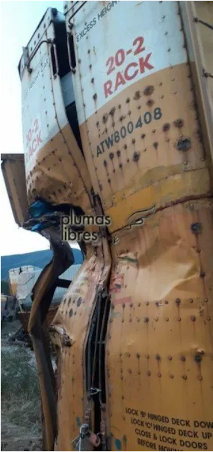 Más de dos metros de los rieles en el kilómetro 293+300 fueron cortados, por lo que se descarriló el tren proveniente de Puebla de la empresa Volskwagen con vehículos de exportación en el que viajaban los trabajadores Artemio Dorantes, conductor; René David Hernández, maquinista, y Abimael Hernández de garrotero.