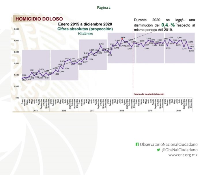 El cruce de datos que detectó el Observatorio, son los datos abarcados entre enero de 2015 y noviembre de 2020 con los datos de víctimas del SESNSP, mientras que para los datos del 1 de diciembre al 30 de diciembre se trabajó con los datos del informe de seguridad.