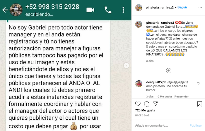 “Se viene demanda de Gabriel Soto, ahí les encargo los cigarros… ¿en el penal me darán chance de hacer piñatas? ¿Entre nuestros seguidores habrá un buen abogado?”, escribió el negocio a través de sus redes sociales.