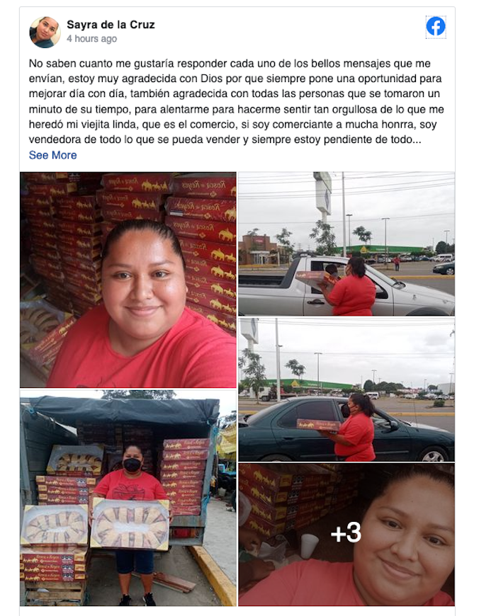 A través de su cuenta de Facebook, María, la mujer señalada por la compra de las roscas, dio su versión. Dijo que ha sido comerciante toda su vida, por lo que siempre está a la expectativa de ver qué puede vender para obtener dinero.