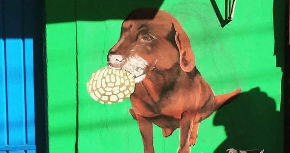Vecinos de la colonia San Simón Culhuacán, en la alcaldía Iztapalapa homenajearon a un glotón perrito, que es fanático de las conchas, con un mural.