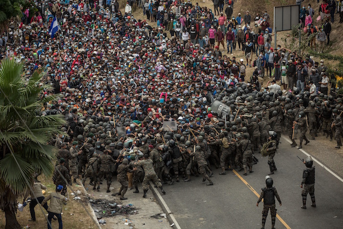 Sin embargo, las fuerzas de seguridad impusieron al final del sábado una barrera policíaca unos 20 kilómetros después de la frontera de El Florido, siempre en Chiquimula, por lo que al menos 6 mil migrantes se encuentran varados sin poder avanzar.