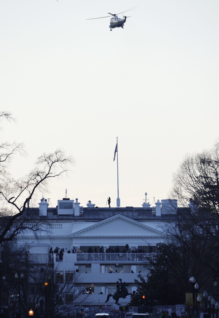 Trump salió del edificio el miércoles por la mañana y cruzó el jardín sur para abordar el helicóptero Marine One. Dijo, “ha sido un gran honor, el honor de mi vida”.