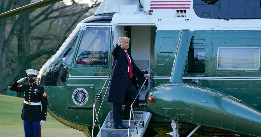 En la recta final de su mandato, el Presidente Donald Trump aseguró que estará "de vuelta de algún modo". Hoy abandonó la Casa Blanca junto con su esposa Melania.