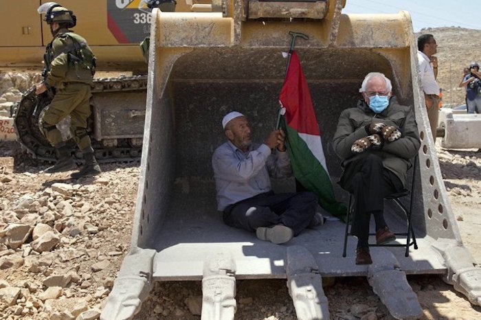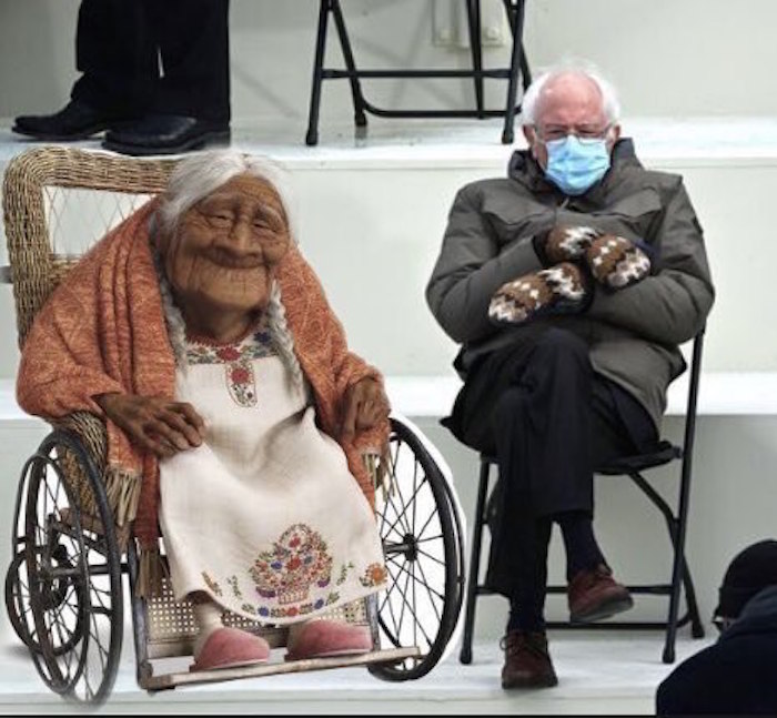 Una foto de Sanders de 79 años sentado en una silla, como invitado frente al Capitolio, y acurrucado por el frío -esta mañana nevó por unos minutos en Washington DC- ha dado la vuelta en las redes sociales por sus grandes guantes de lana.