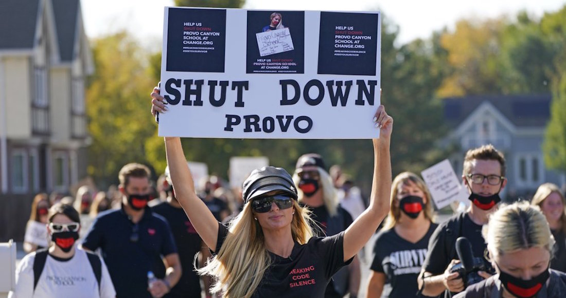 Hilton fue enviada a la escuela Provo Canyon durante 11 meses a los 17 años, donde dice que fue abusada mental y físicamente, recordando que los miembros del personal la golpeaban, la obligaban a tomar pastillas desconocidas, la miraban durante la ducha y la enviaban a confinamiento solitario sin ropa como castigo. La socialité y estrella de reality shows también habló sobre el abuso en un documental titulado This is Paris que fue lanzado este otoño.