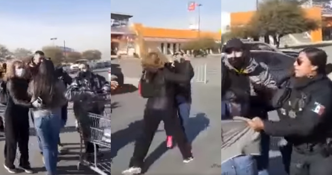 “Quítate todo lo que te tengas que quitar porque te voy a agarrar”, le dice una joven de playera a otra de camiseta negra, según el video que captó la agresión.