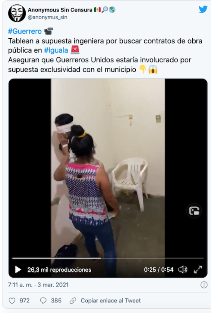 Criminales azotan a una mujer que buscó contratos de obras públicas en Iguala, Guerrero