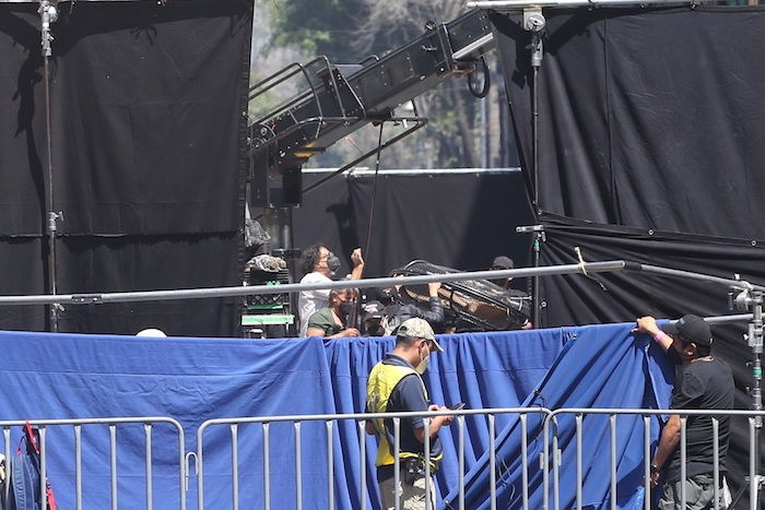 Agentes de seguridad del equipo de González Iñárritu estuvieron cuidando en todo momento que tanto los transeúntes como la prensa no se acercaran a las vallas a observar o tomar fotografías.