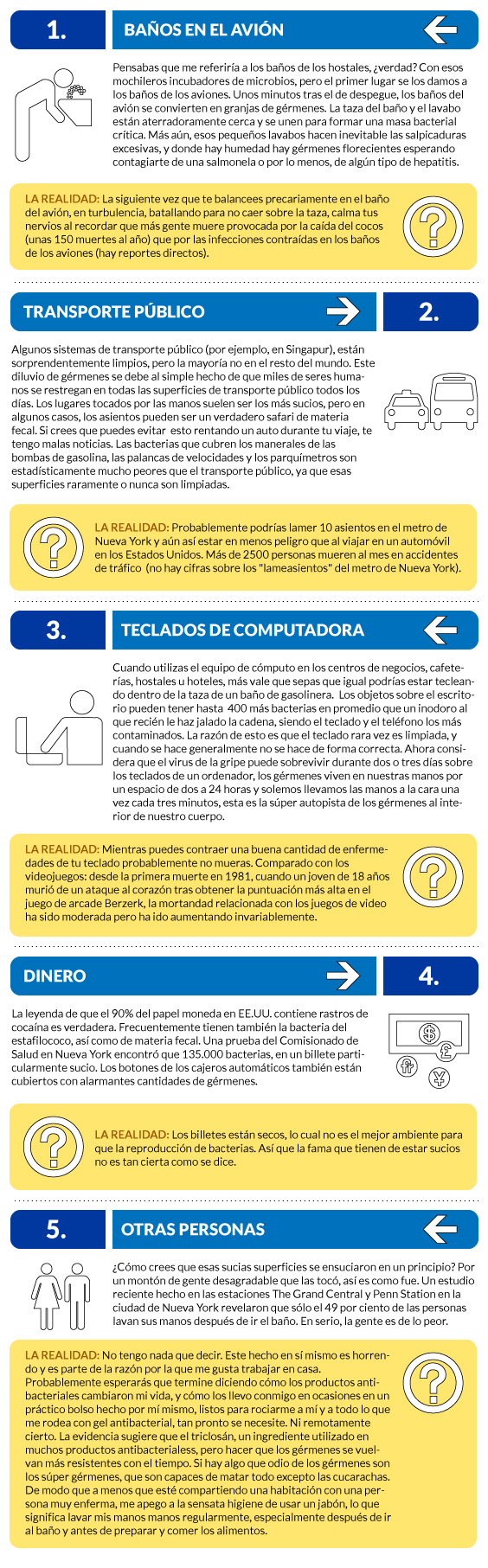 Debido a que este es un tópico que conozco bien, me han encargado una lista de las cosas más sucias con las que estarás en contacto frecuente durante todo tu viaje.