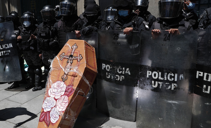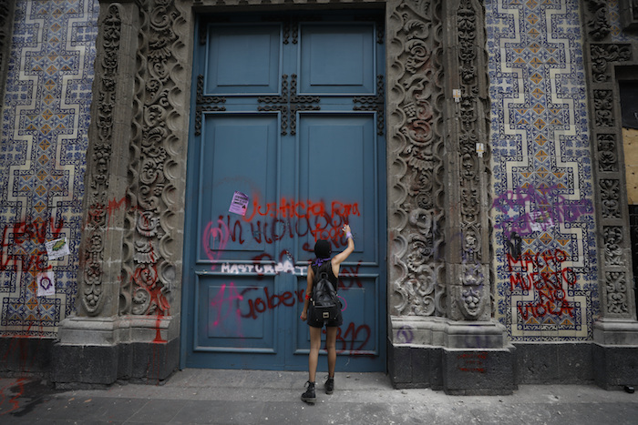 Esas contradicciones se exhibieron en la vasta plaza central de Ciudad de México, luego de que el gobierno colocó vallas de acero antidisturbios frente al Palacio Nacional mientras activistas adornaron las estructuras con flores y los nombres de mujeres víctimas de asesinato.