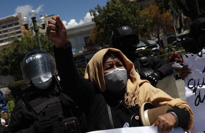 En Bolivia, dos grupos de mujeres, uno afín al gobierno del Presidente izquierdista Luis Arce y otro integrada por activistas opositoras, marcharon en La Paz, algunas con pocas medidas sanitarias de seguridad.
