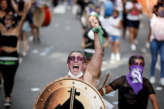 En Buenos Aires varios miles de mujeres rodearon el Congreso y reclamaron “basta de feminicidos”, uno de los pocos delitos que no disminuyó durante la pandemia de coronavirus.