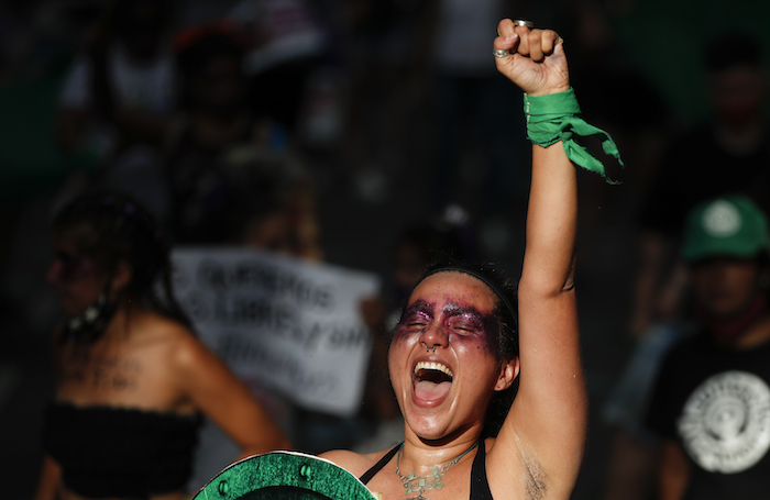 “Su narrativa del feminismo es falsa, siempre y cuando las mujeres en Venezuela suframos la vida que estamos sufriendo: precarizados, violentada, sin derechos y sin voz. Sobre todo sin voz”, dijo Zuleika Matamoros, una maestra feminista que exigió la legalización del aborto como muchas otras mujeres que asistieron a la protesta.
