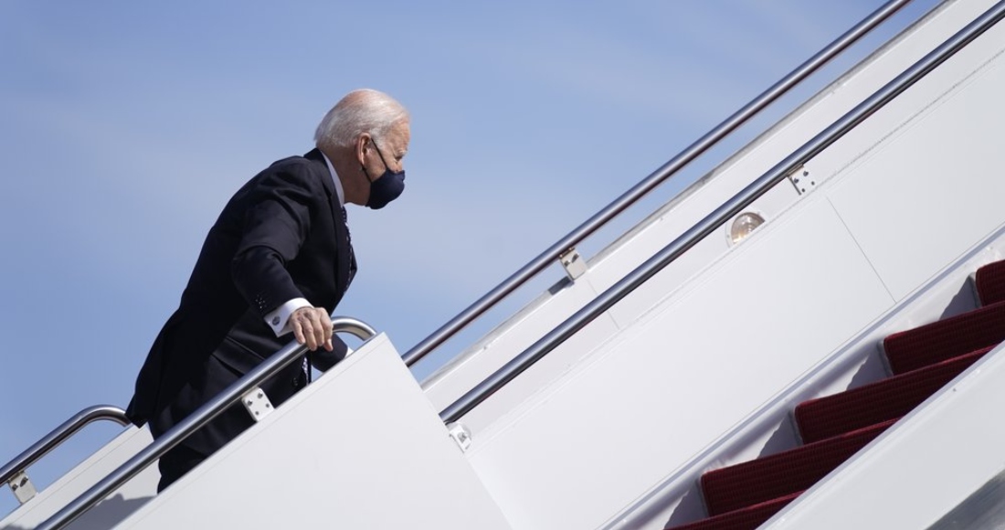 VIDEO: Biden tropieza 3 veces al subir las escaleras del avión presidencial; "está bien": Subsecretaria