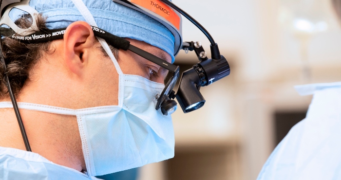 El equipo también realiza una biopsia de pulmón en la sala de operaciones para asegurarse de que no haya daño permanente en el pulmón del donante.