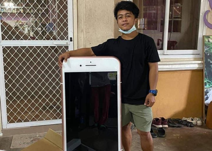 El cliente encargó un iPhone en la página Lazada, propiedad de Alibaba Group, y le sorprendió el elevado costo de la entrega. Sin embargo, la razón le quedó clara nada más recibir la mercancía, pues resultó tener casi la misma altura que él.