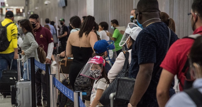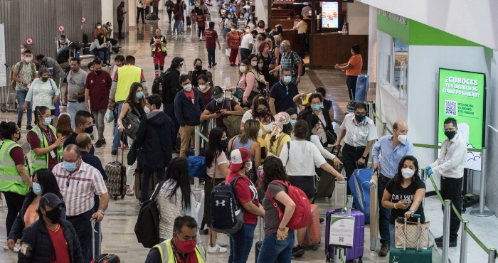 Ciudad de México, 26 marzo (Sin Embargo).- Este viernes, miles de personas se aglomeraron en las instalaciones del Aeropuerto Internacional de la Ciudad de México (AICM) durante el inicio de las vacaciones de Semana Santa para viajar a destinos turísticos, a pesar de las restricciones sanitarias determinadas por la pandemia de la COVID-19.
