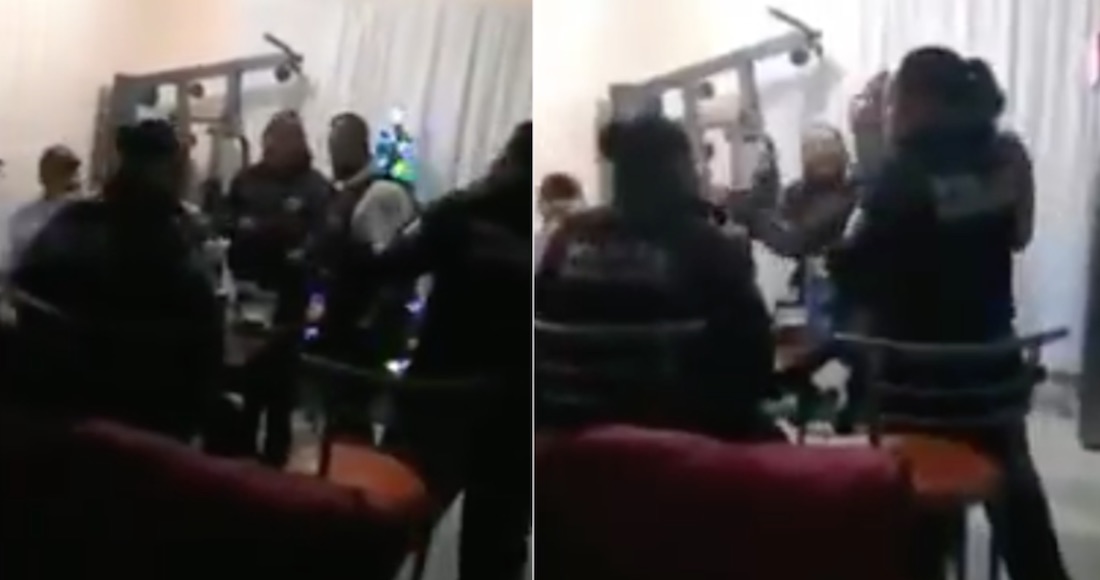 En las imágenes se aprecia a tres oficiales mujeres y un hombre al interior de una vivienda, mientras la música suena todo volumen.