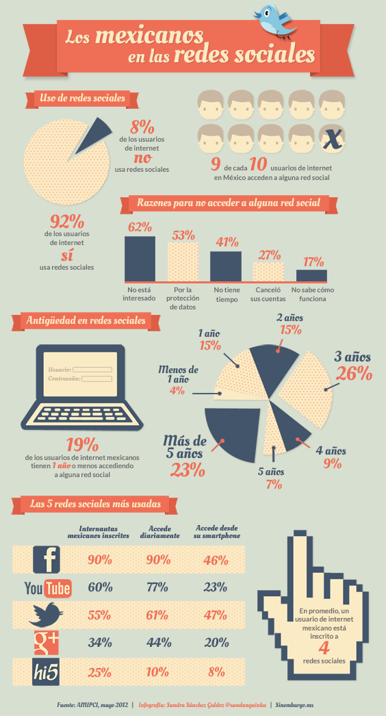 INFOGRAFÍA: Los mexicanos en las redes sociales Redacción/SinEmbargo 16/10/2012 - 12:00 am Para poder ver la infografía dar click en la imagen. Redacción/SinEmbargo Lo dice el reportero + Sección Opinión Inconstitucionalidad de la sobrerrepresentación "La configuración actual del Congreso representa una sobrerrepresentación anticonstitucional que pone en riesgo el sistema de controles... Por Gustavo de Hoyos Walther Altruismo sin reglas: el riesgo del cuidado animal "La paradoja de los espacios dedicados al cuidado de los animales sin hogar: nacen del impulso de... Por Salvador Guerrero Chiprés El exhorto de la UNAM por la necesaria cohesión nacional "Quizás ahora lo que no se logre desde el poder, desde el Estado, si es que continúa... Por Jaime García Chávez Imperialismo sin complejos "La nueva política internacional de Estados Unidos ahora ya no pretenderá encubrir sus ambiciones de poder y... Por Rubén Martín + Sección Opinión en Video Por Ana Lilia Pérez Extorsiones trumpianas Por Álvaro Delgado Gómez Contra la censura Por Alejandro Páez Varela Qué debilita a la Presidenta. Notas. Por Jorge Zepeda Patterson Manual para sobrevivir a un ataque de Trump Por Muna D. Buchahin Anonimato Por Daniela Barragán ¿Qué es María Corina? Por Héctor Alejandro Quintanar La derecha mexicana es trumpista Por Pedro Mellado Rodríguez Los buitres del imperio merodean sobre México Por Lorenzo Meyer La era de mala vecindad Por Fabrizio Mejía Madrid El mito de Venezuela + Sección Galileo La lactancia materna protege la salud mental de madres hasta 10 años después: estudio El "burnout" no es igual que el estrés; "es más problemático", explica una psicóloga ¿Consumes creatina como suplemento para ejercitarte? Mitos y verdades que debes saber Científicos de EU exigen a Trump soltar Groenlandia, clave frente al cambio climático FOTOS ¬ Albañiles hallan presunta tumba mixteca en Oaxaca; el INAH la autentificará ¿Por qué adolescentes necesitan dormir más el fin de semana? Un estudio lo explica Estudio revela que dormir mal puede provocar demencia en personas de la tercera edad Caldos, tecitos, reposo, agua... cómo los remedios caseros funcionan contra la gripe El orgasmo femenino puede provocar risa, llanto o dolor de pies, según un estudio ¿Plaga de cucarachas en casa? ¡Cuidado! Sus toxinas pueden provocar asma infantil