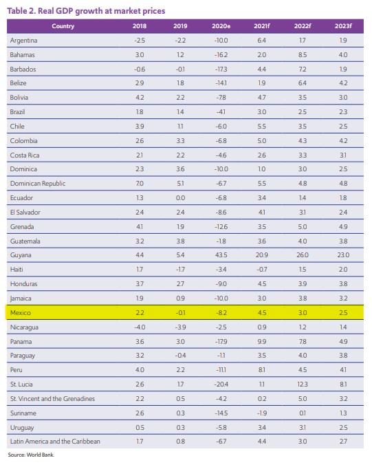 Entre los elementos alentadores para la región, el organismo liderado por David Malpass destacó la recuperación de los precios de las materias primas y el repunte de las remesas enviadas por los inmigrantes, que suponen un importante soporte económico en Centroamérica y el Caribe.