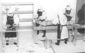 Estas prácticas quirúrgicas estaban integradas, supuestamente, en el programa de formación de cirujanos del ejército, para enseñarles cómo manejar a los soldados heridos en el frente.