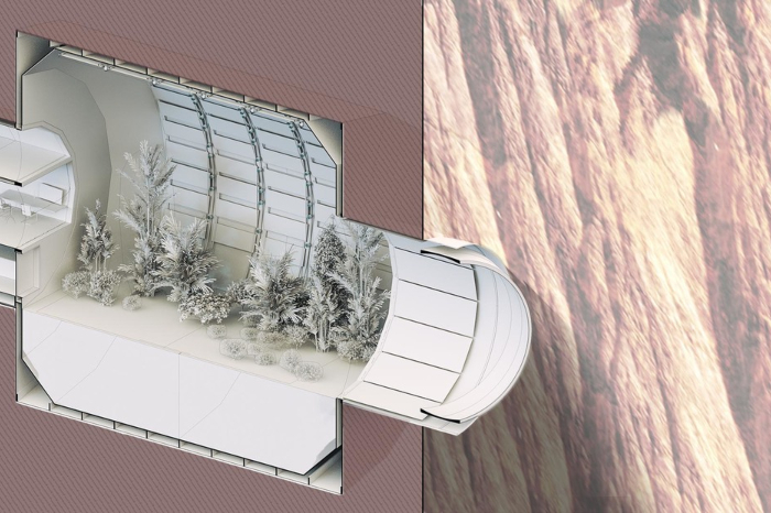 Según el plan desarrollado por el estudio y el equipo internacional de científicos SONet network, el asentamiento, denominado Nüwa, se ubicaría en dentro de un precipicio de una montaña de la formación geológica Tempe Mensa, en el hemisferio norte del planeta rojo. Las rocas protegerían el interior de la colonia de la radiación espacial y de la baja presión atmosférica de Marte, mientras que unas ventanas especiales en el acantilado proporcionarían luz solar indirecta. Bajo tales condiciones, la urbe podría crecer hasta tener varios cientos de miles de habitantes, estima el arquitecto.