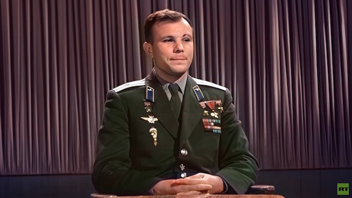 Fotografía a color del cosmonauta ruso Yuri Gagarin. Foto: RT.