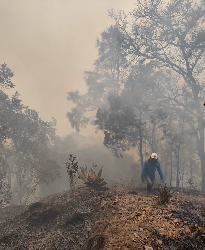 Ante ello, los helicópteros de la Comisión Nacional del Agua (Conagua) y de la Secretaría de la Defensa Nacional (Sedena) fueron sacados de operación en la zona y se movilizaron para atender incendios en otros estados del país, por lo que ahora el incendio se enfrenta a pie con el apoyo de 113 brigadistas de gobierno y voluntarios.